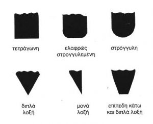 Σχηματική απεικόνιση που παρουσιάζει διάφορες τομές από σπάτουλες μεταξοτυπίας